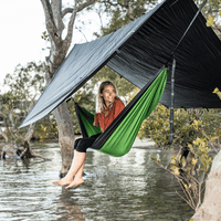 Nakie hammocks are the perfect addition to any outdoor space. Made from recycled fabric our ultralight weight double hammock and hammock straps fit perfectly in your carry bag or back pack. Pair your hammock with our heavy duty rain tarp, bug net and sustainable down blanket for the ultimate camping trip. If complete relaxation is what you're chasing our hammock is the perfect place to curl up with a good book or take a cheeky nap. If it's for you, a friend or loved one we have the perfect eco friendly gifts designed to last a lifetime.