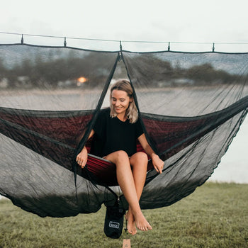 When we created the Nakie hammock combos we focussed on producing an ultra light hammock, bug net and tarp to be used for hiking, camping, or any adventure. We wanted a hammock set up that was extremely portable and easy use. Each hammock bug net and tarp combo weighs just 2.5kg and is nice and compact, easily fitting in your backpack. Set up is quick and easy in fact it can take less than 10 minutes to set up and be relaxing in a Nakie hammock, bug net and tarp combo.