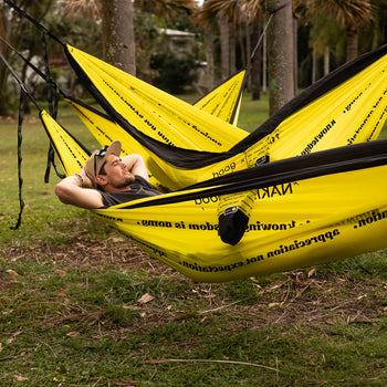 Save 0% £72.00 Good Human Factory - Recycled Hammock with Straps Double HammockDimensions: 3m × 1.8mWeight rating: 225kgWeight: 600g 2 × Hammock StrapsLength: 2.3m per strapWeight rating: 450kgWeight: 130g p... View full details