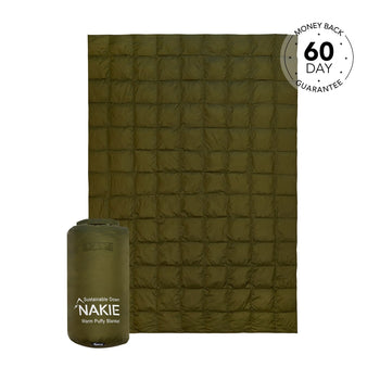 The Nakie Puffy Blankets are our favourite outdoor accessory for cosy comfort. We love the snug feeling of a down jacket and wanted to recreate that feeling with an eco-friendly blanket alternative. Every Nakie product has to be functional, durable, sustainable and stylish. This is no easy feat, but we think we hit the mark with our puffy blankets.