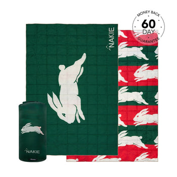NRL South Sydney Rabbitohs x Nakie Puffy Blanket - SpecificationsDimensions: 2m × 1.4m600 fill power 500 grams recycled plasticWeight: 780 gramsS...