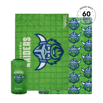 NRL Canberra Raiders x Nakie Puffy Blanket - SpecificationsDimensions: 2m × 1.4m600 fill power 500 grams recycled plasticWeight: 780 gramsStorage...